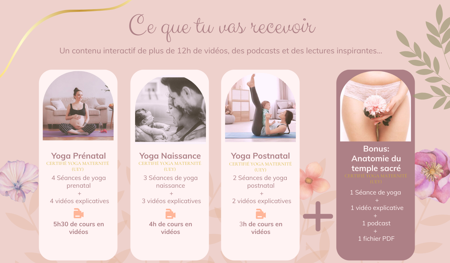 Ce programme est né d'une demande de mes élèves enceintes. Elles souhaitaient prolonger à la maison cette alchimie unique : des mouvements physiques sécuritaires, adaptés à la grossesse, mêlés à l'écoute subtile de l'énergie transformatrice qui pétille en elles.