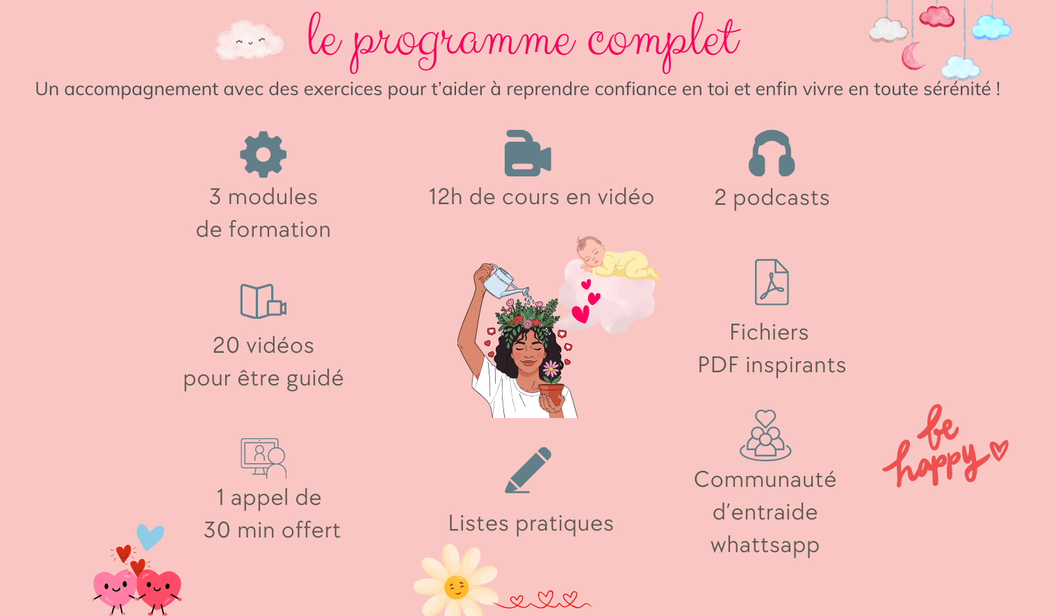 Dès ton inscription, tu recevras par mail un accès à une plateforme en ligne où tu trouveras : Les vidéos et audios à suivre quand tu le souhaite. Un espace personnel pour retrouver tous tes modules à tout moment. Un accès illimité pour refaire le programme autant de fois que tu le souhaites.